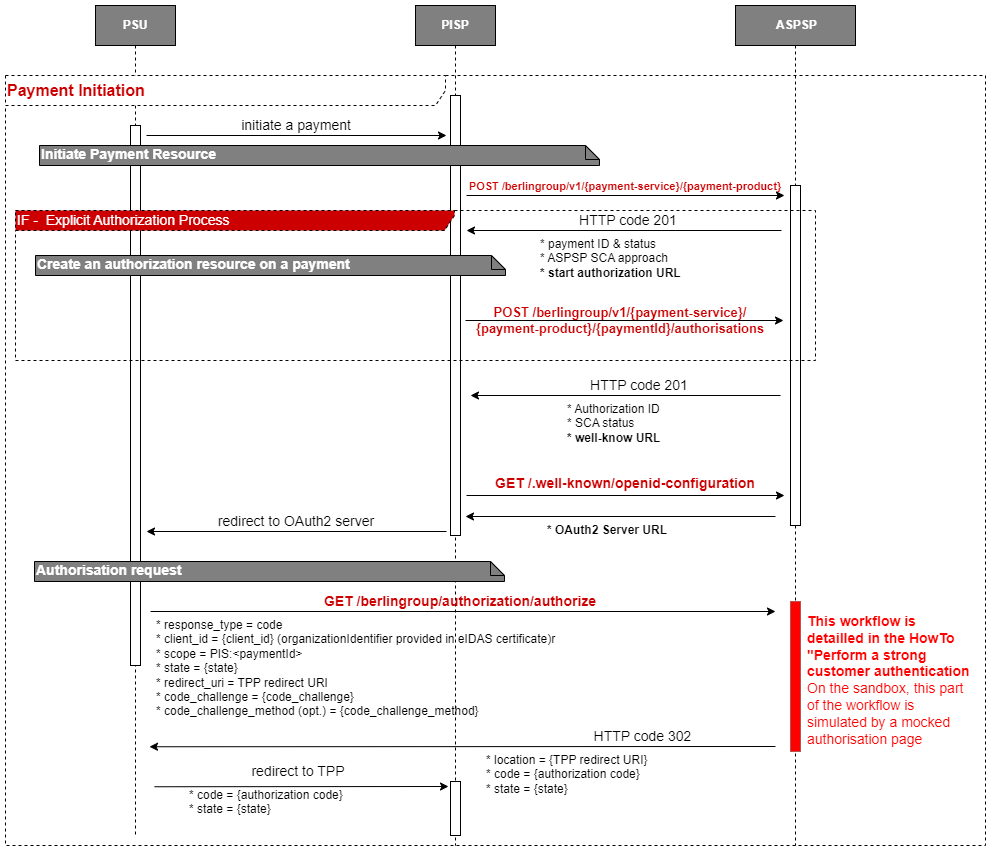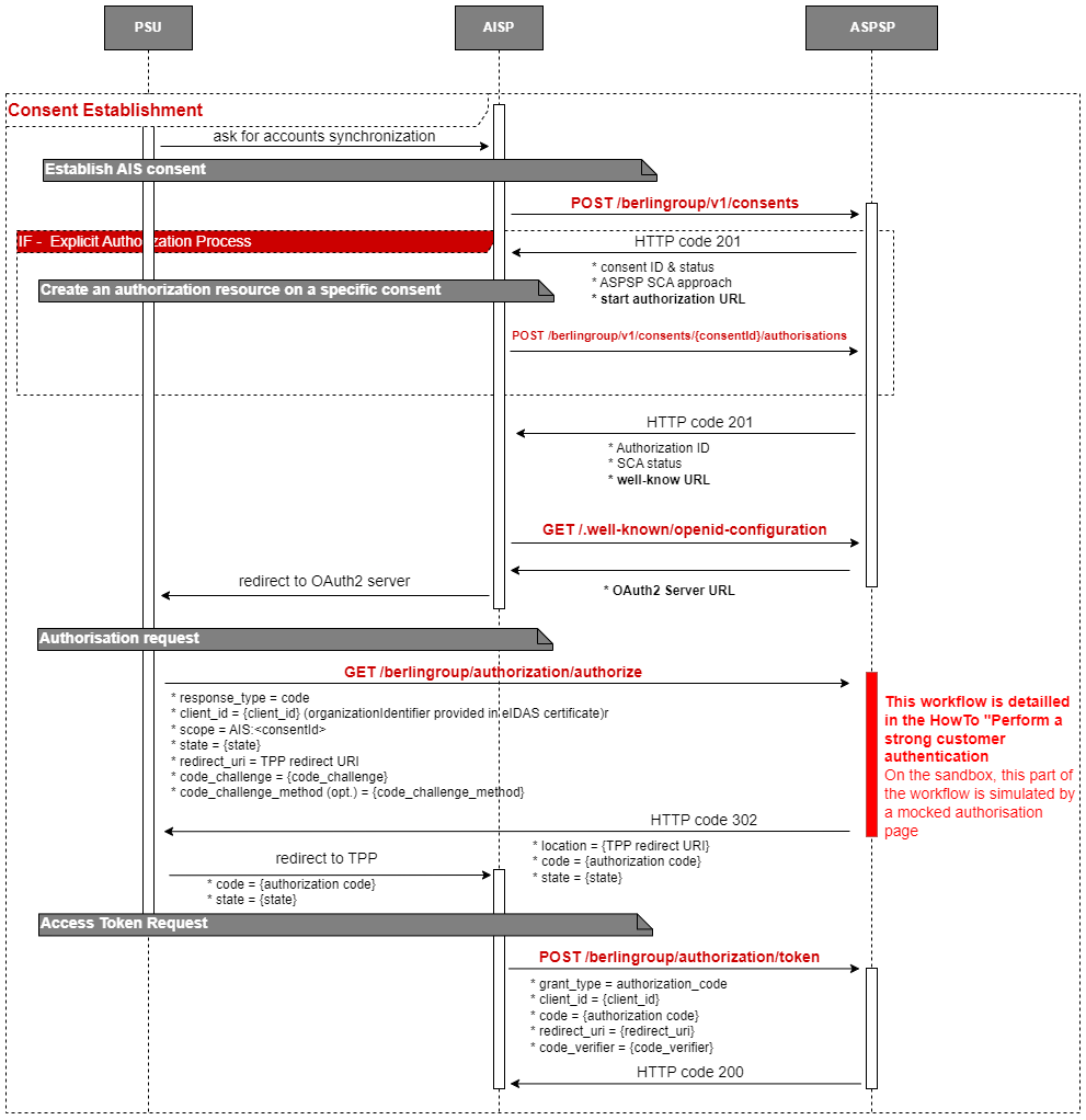 To carry out its strong authentication on the ASPSP side, the PSU will be redirected from the TPP APP through several pages within the workflow described below.