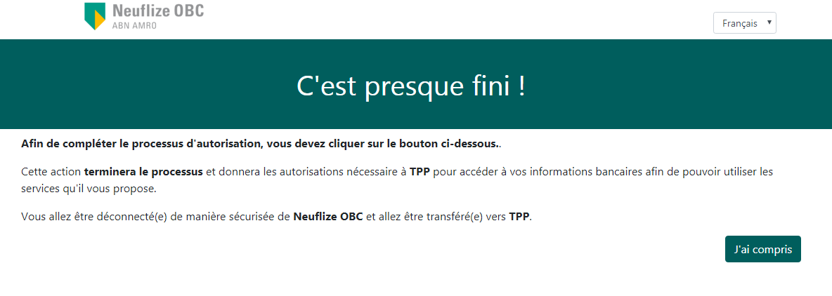 Before being redirected to the TPP App, the PSU will access a redirection screen with some context related to the given authorisation. This screen is slightly different for AIS and PIS.